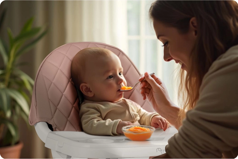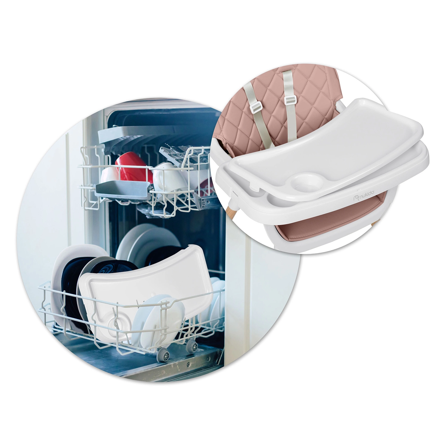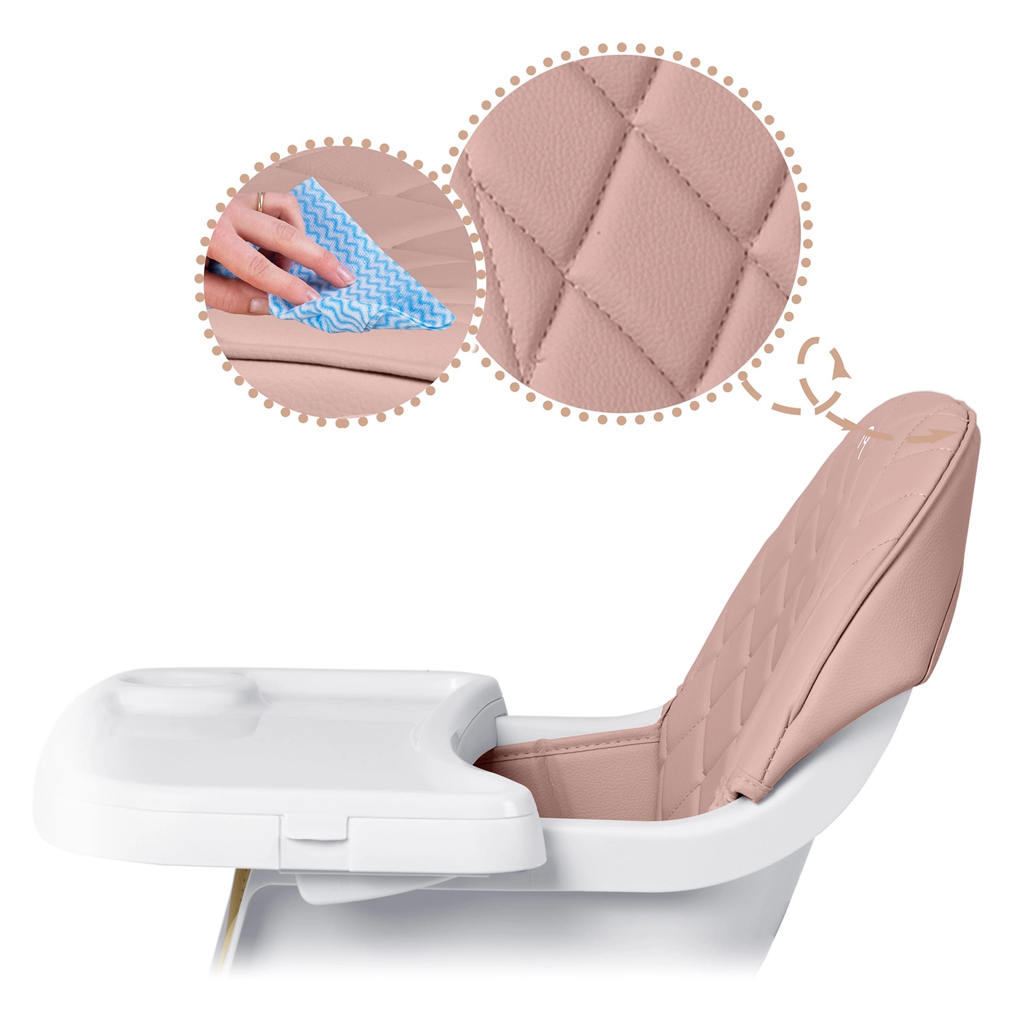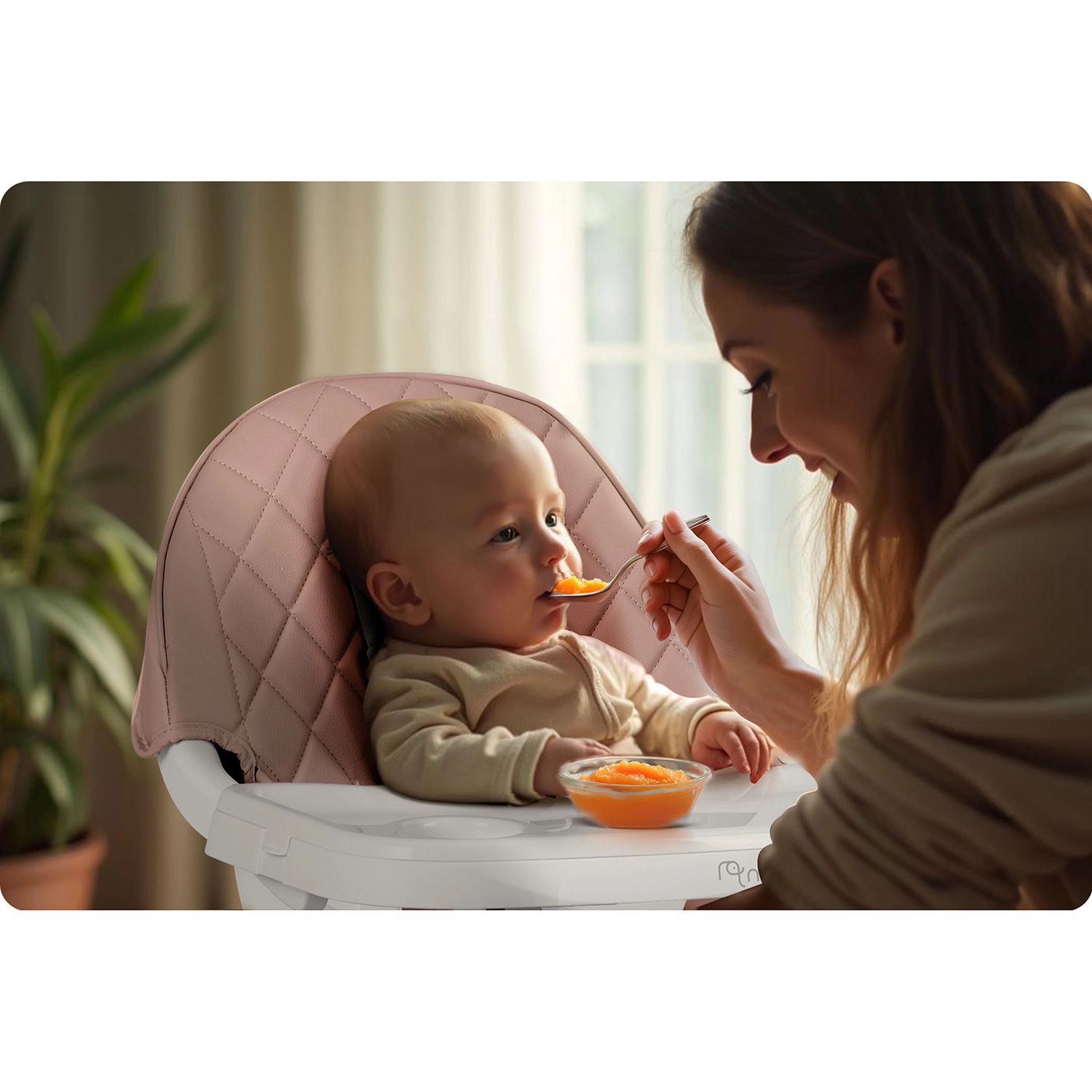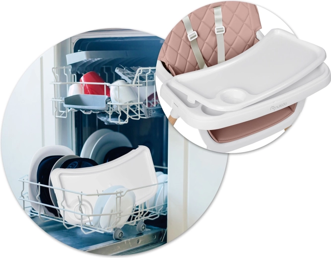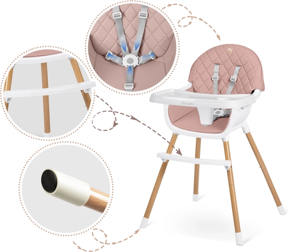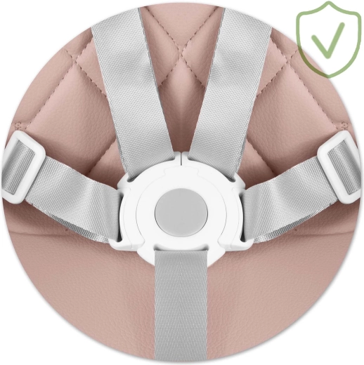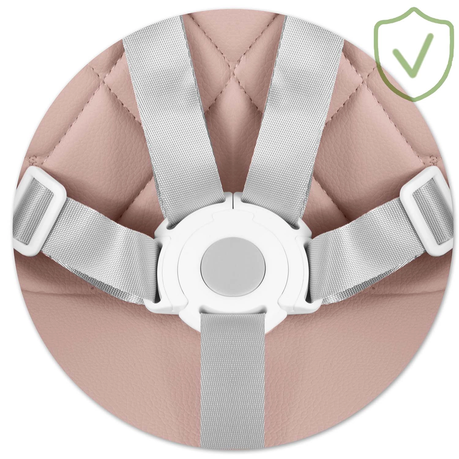 Spolehlivé 5bodové pásy, stabilní nohy s protiskluzovými koncovkami a pevná konstrukce zajišťují bezpečné sezení při jídle i při hře.