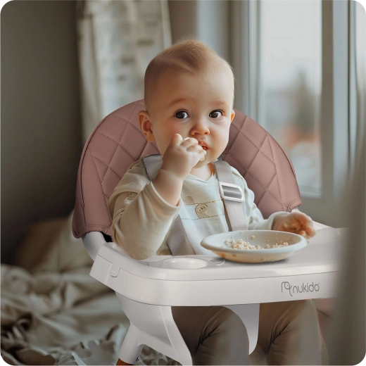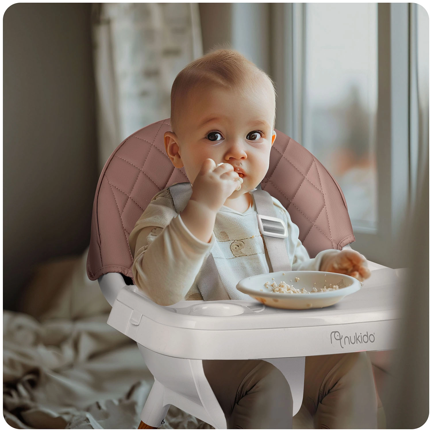 NUKIDO Lilo je praktická dětská jídelní židlička, která roste s vaším dítětem. Díky dvěma úrovním nastavení podnosu snadno přizpůsobíte prostor před dítětem, podnos lze navíc kompletně sejmout pro samostatné sezení u stolu. Měkké, polstrované sedadlo z materiálu, který neabsorbuje nečistoty, stačí po jídle jednoduše otřít.