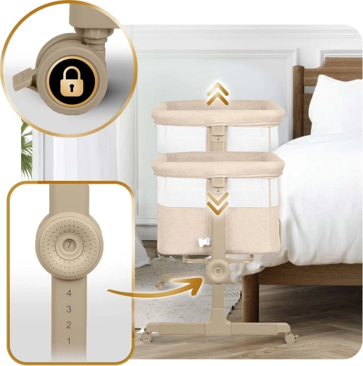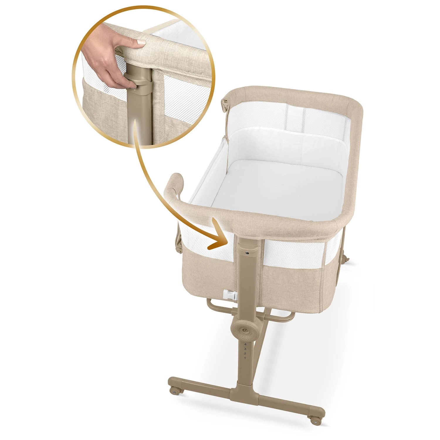 Obě strany lze nastavit samostatně. Snadno srovnáte výšku s lůžkem rodičů nebo vytvoříte jemný náklon pro větší pohodlí dítěte.