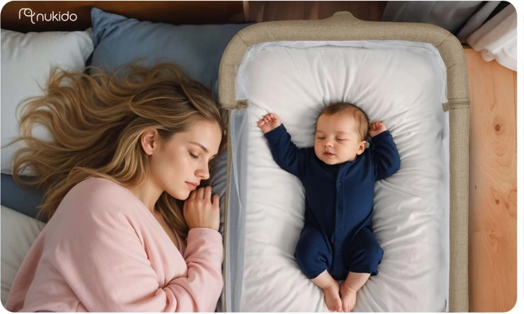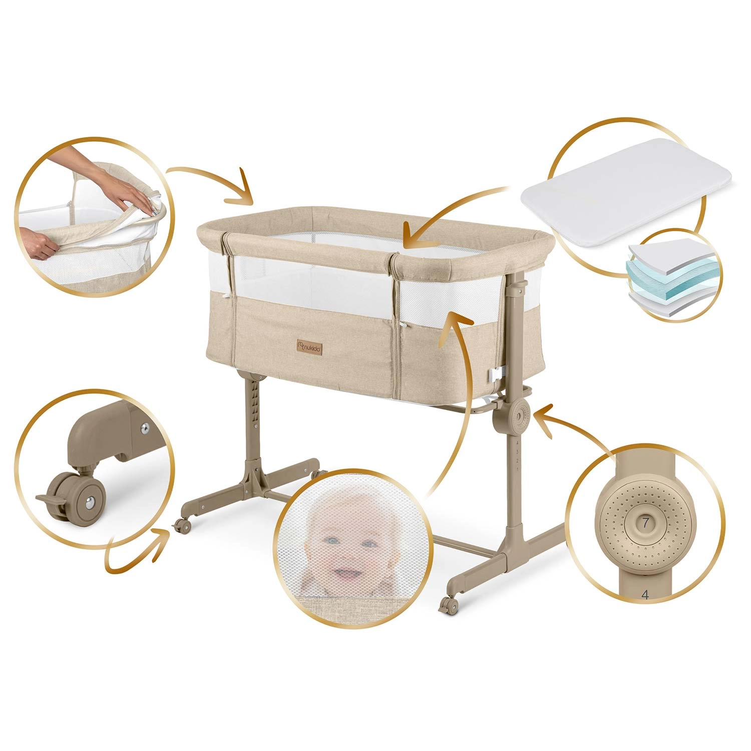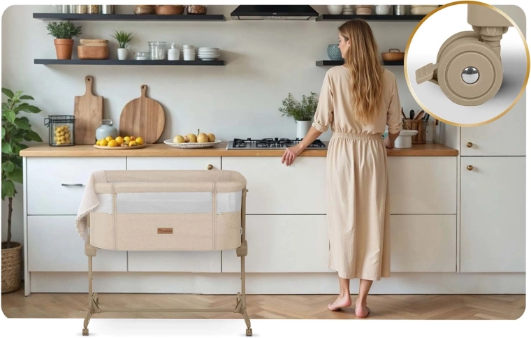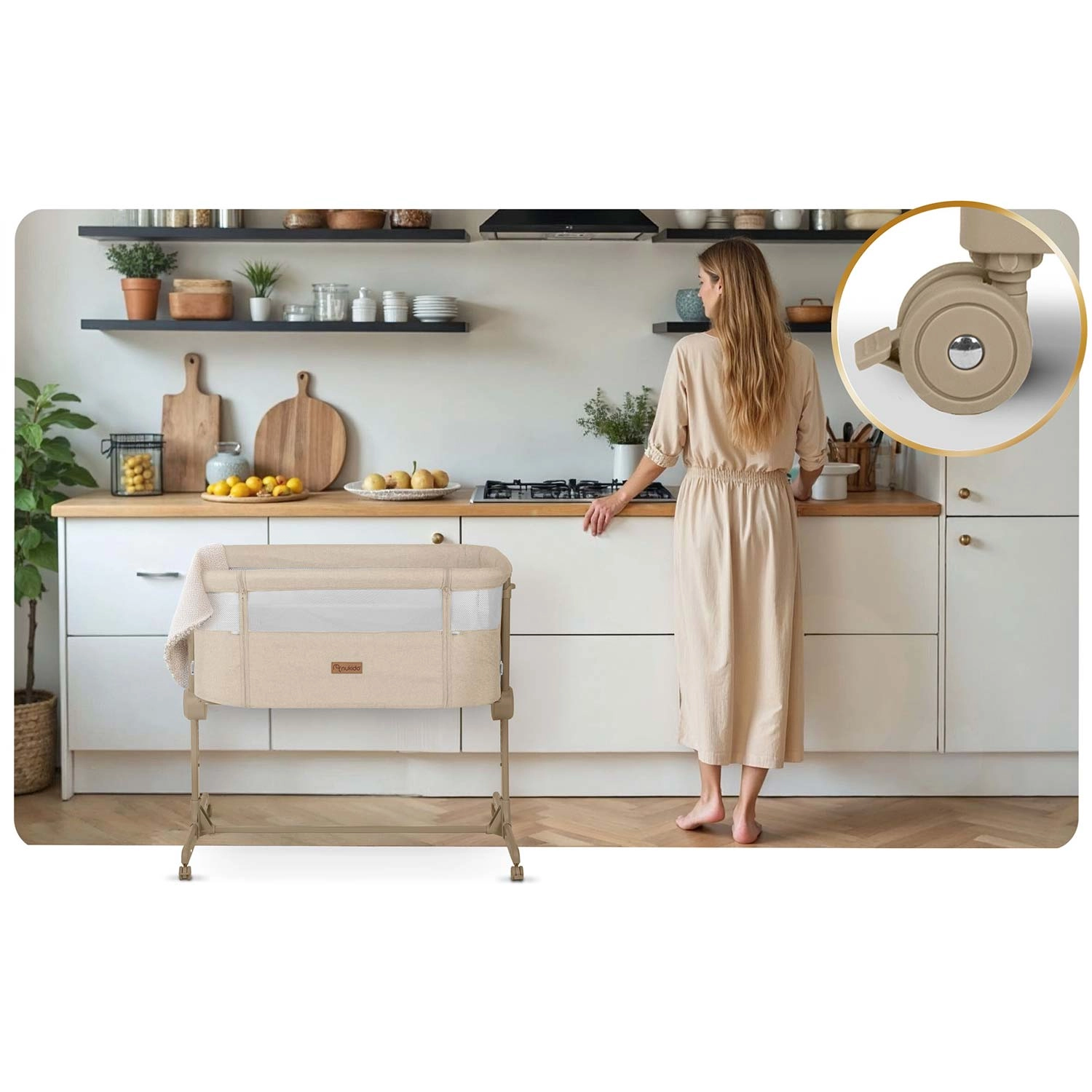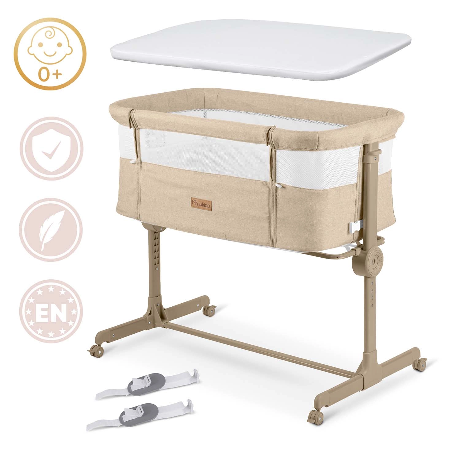 Praktická přístavná postýlka NUKIDO pro novorozence spojuje bezpečné společné spaní s pohodlnou péčí v noci. Nabízí nezávislé nastavení výšky na obou stranách (1–7), prodyšné síťované bočnice, skládací konstrukci a 4 kolečka s brzdami. Součástí je matrace s pratelným potahem a připevňovací pásy pro bezpečné uchycení k posteli rodičů.