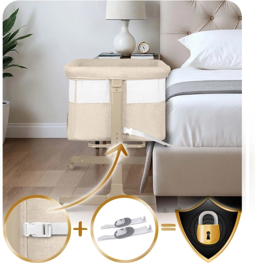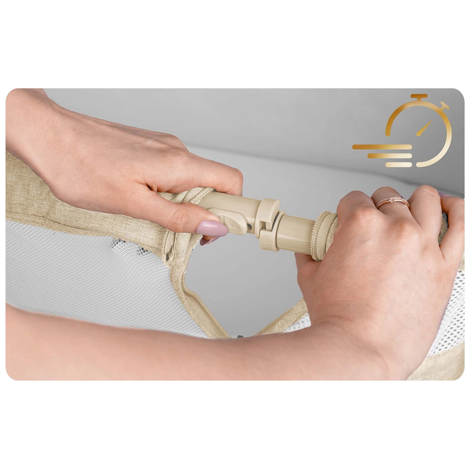 - Bezpečné připevnění k posteli díky univerzálním popruhům – bez vrtání a bez starostí.