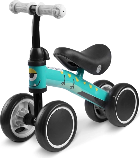 Lehké odrážedlo se čtyřmi stabilními kolečky pro nejmenší pomáhá rozvíjet rovnováhu, koordinaci a sebedůvěru. Má odolný kovový rám, měkké pěnové sedlo, gumové rukojeti se zarážkami a nízký nástup pro snadné nasedání. Jedná se o outletový kus – drobné kosmetické nedokonalosti nemají vliv na bezpečnost ani jízdu.