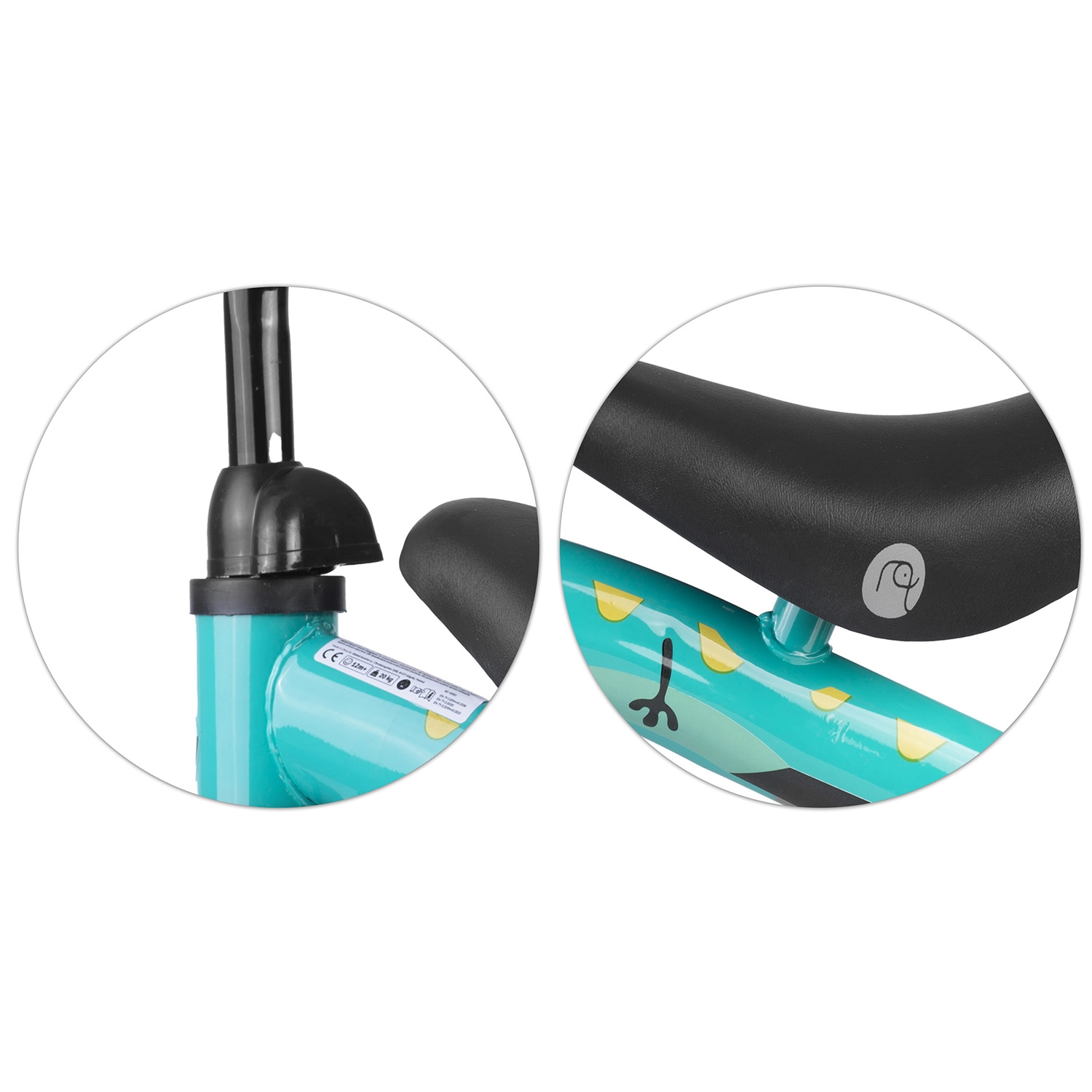 Měkké polstrované sedlo se snadným nastavením výšky roste spolu s dítětem a zaručuje komfort při každé jízdě.