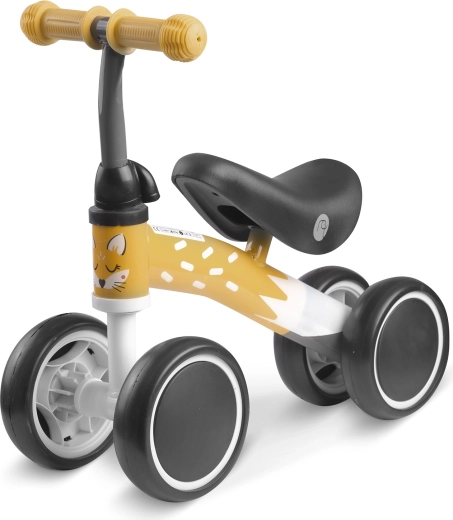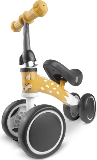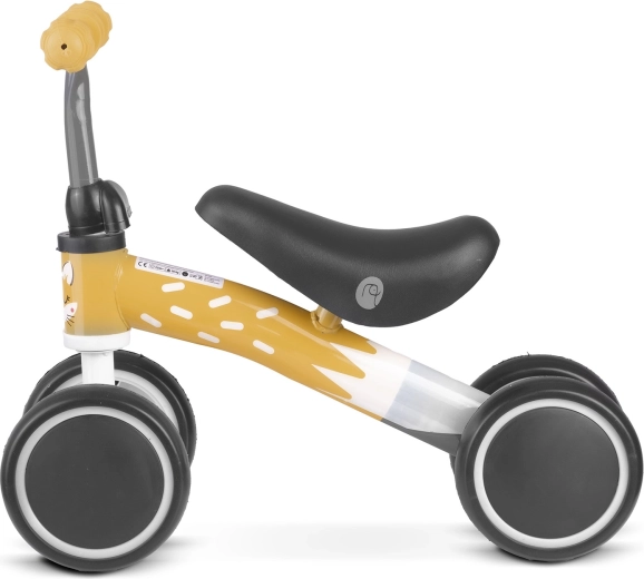 Odrážedlo se 4 kolečky Nukido je skvělým startem pro malé děti, které se učí koordinaci a rovnováhu. Stabilní čtyřkolová konstrukce dodá jistotu, zatímco lehký kovový rám a pohodlné pěnové sedátko zajistí příjemnou jízdu. Gumové rukojeti se zarážkami pomáhají udržet bezpečný úchop.