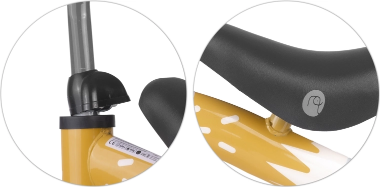 - Pohodlí pro dítě: měkké sedátko a bezpečné rukojeti se zarážkami.