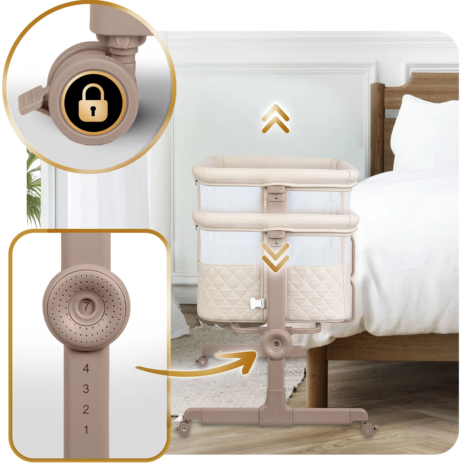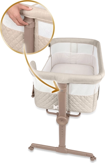 Každý bok lze nastavit zvlášť – postýlku snadno zarovnáte s postelí rodičů nebo jemně naklopíte pro větší pohodlí dítěte a úlevu při refluxu.