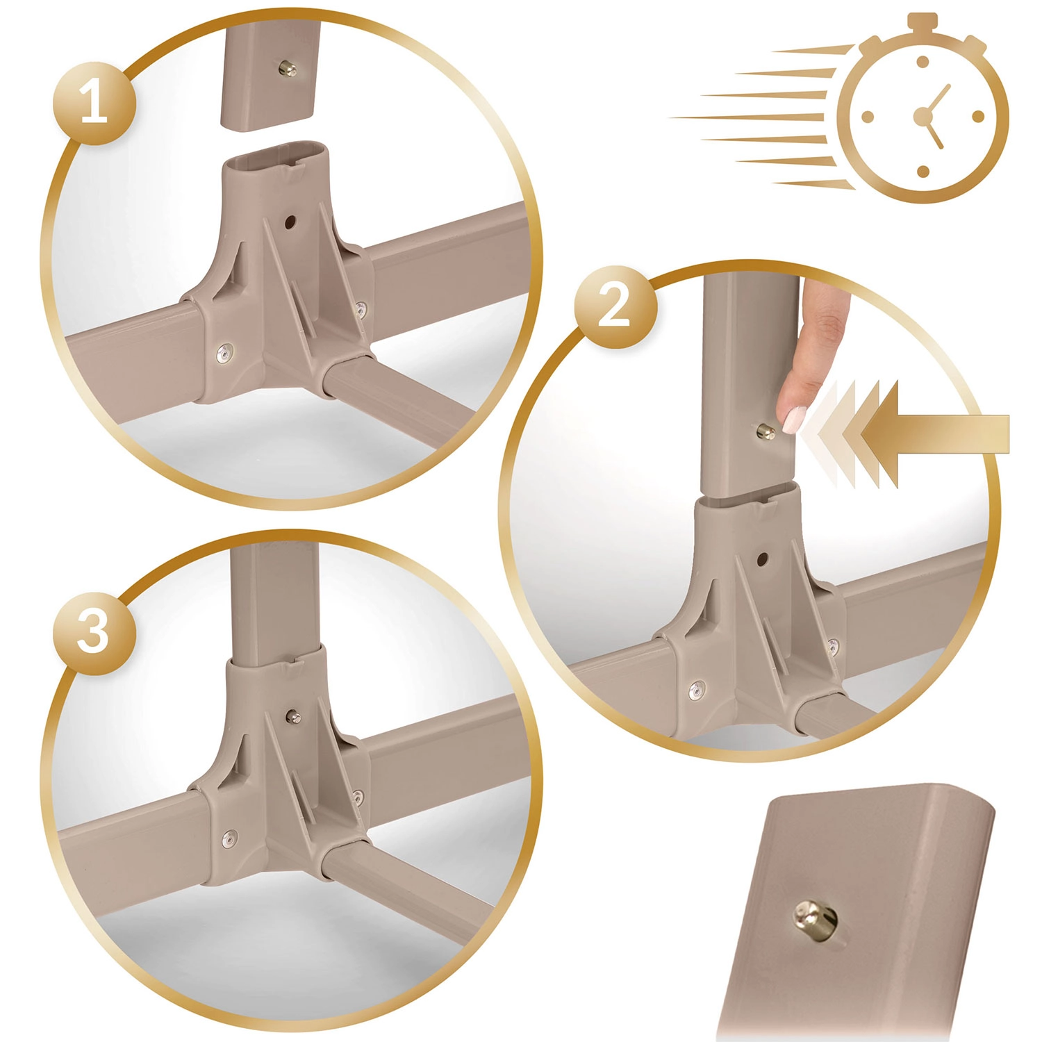 Systém Quick Click umožní bleskovou montáž bez nářadí. Potahy lze sejmout a vyprat, matrace má snímatelný, prodyšný potah.