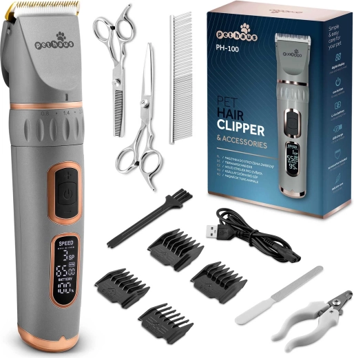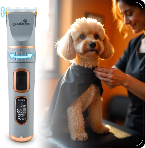 PETHAUS PH-100 je spolehlivý strojek pro psy a kočky, který kombinuje vysoký výkon s tichým chodem, aby byl střih pro mazlíčka co nejpohodlnější. Odolné ocelové čepele zajišťují přesný a hladký řez bez tahání, LCD displej zobrazuje stav baterie, rychlost a režim, takže máte nad stříháním vždy plnou kontrolu.