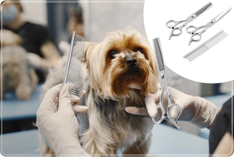 - USB‑C kabel, čisticí štěteček, nůžky, degažovací nůžky, hřeben, kleštičky na drápky, pilník