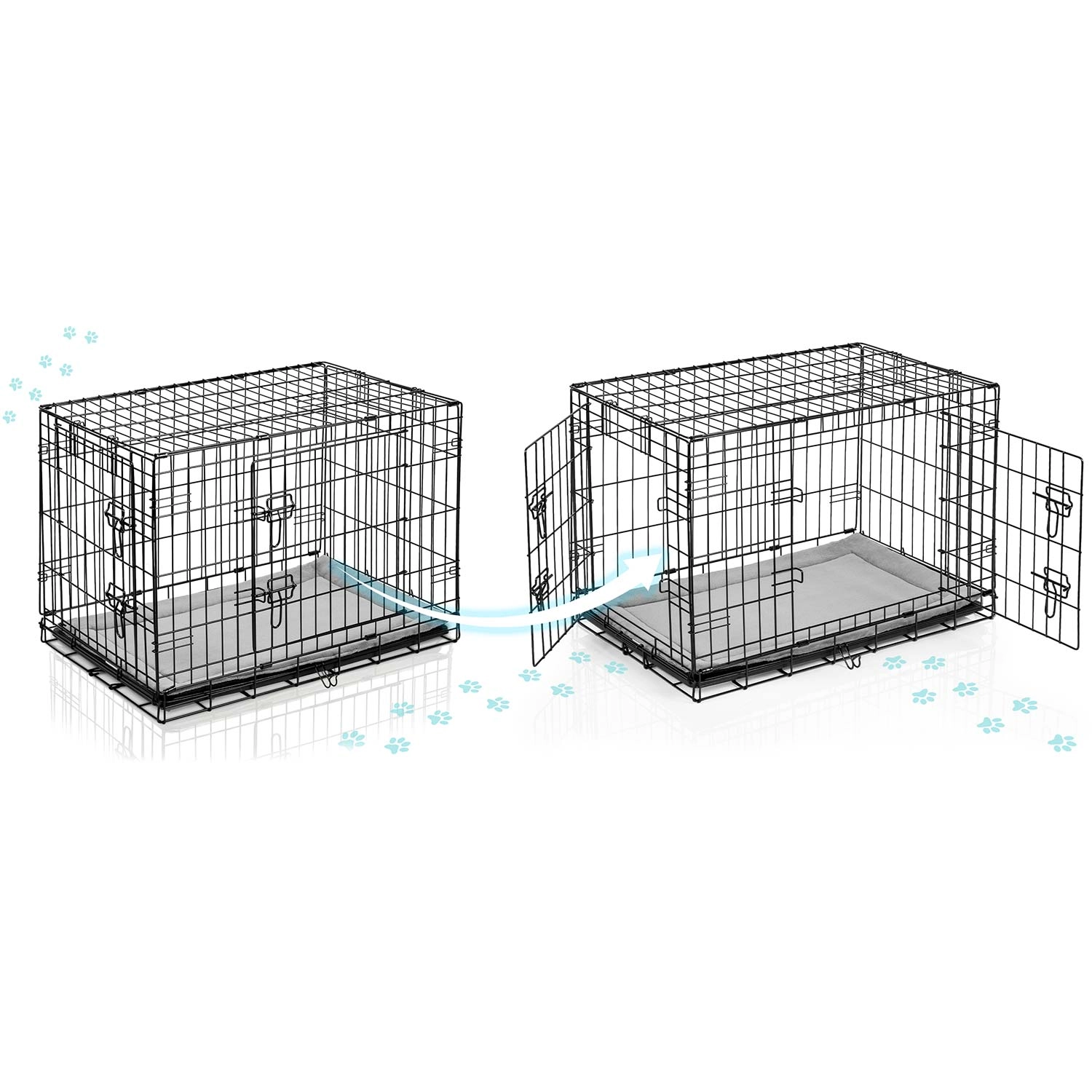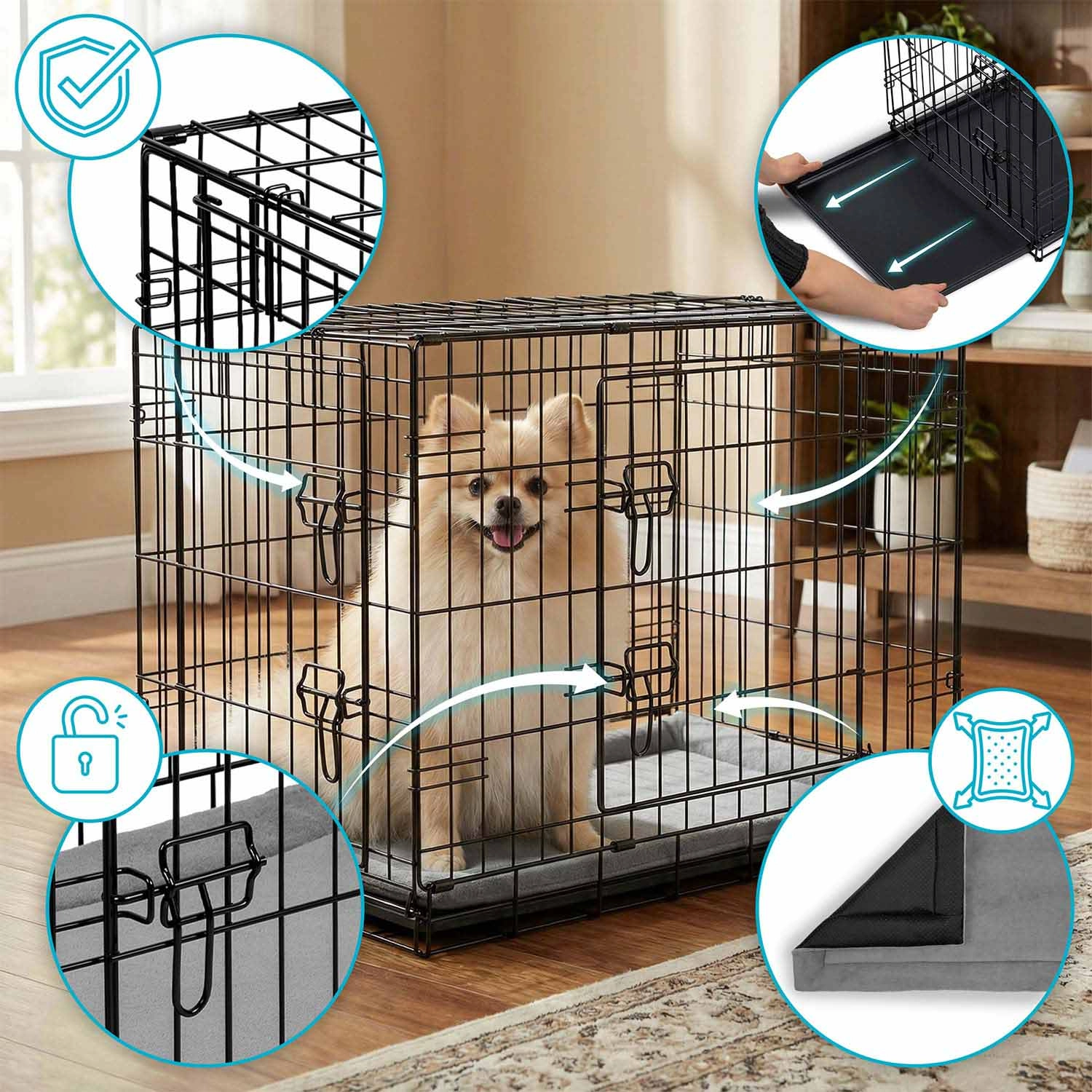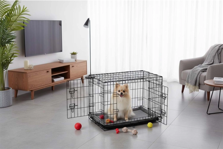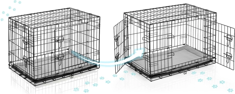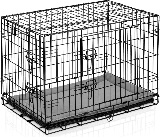Robustní ocelová klec s práškově lakovaným rámem poskytuje psovi klidné a chráněné místo. Díky dvojitým bezpečným západkám na předních i bočních dveřích ji snadno umístíte do interiéru a přizpůsobíte prostoru. Součástí je měkké pelíškové lože pro větší komfort.