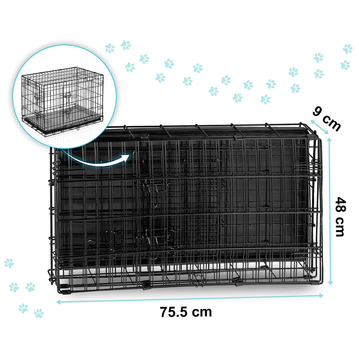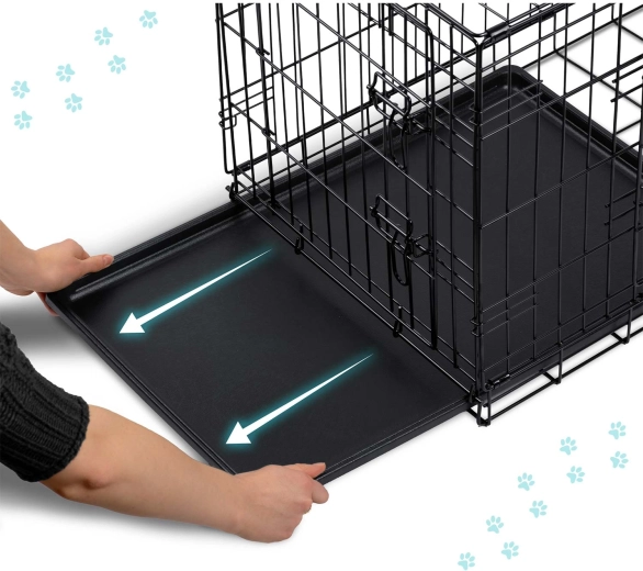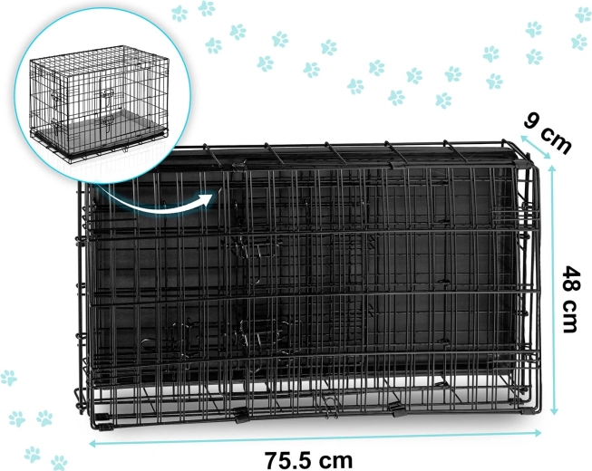 Klec během několika vteřin složíte do ploché „kufříkové“ podoby s praktickým uchem. Vyjímatelný plastový tác umožňuje rychlé čištění a udržení hygieny doma i na cestách. Konstrukce z drátěného pletiva zaručuje proudění vzduchu a přehled, což pomáhá snižovat stres psa.