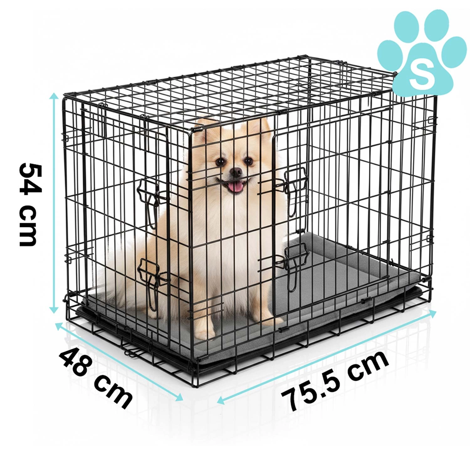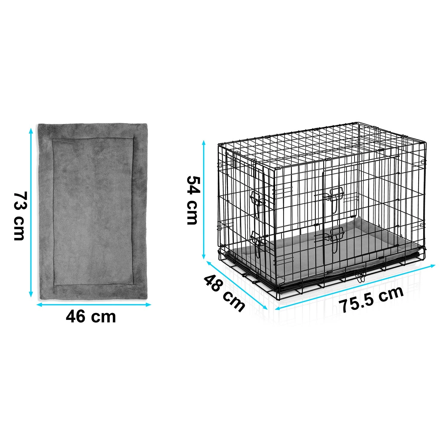 Kovová kennelová klec pro psa s pelíškem 75 × 45 × 54 cm