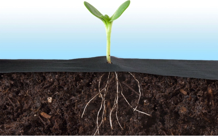 Hustá netkaná textilie účinně blokuje prorůstání plevelů, zadržuje půdní vlhkost a vytváří ideální podmínky pro růst rostlin bez nutnosti používání herbicidů.