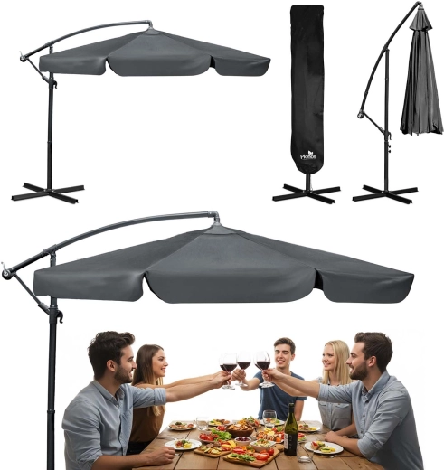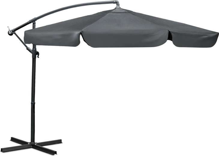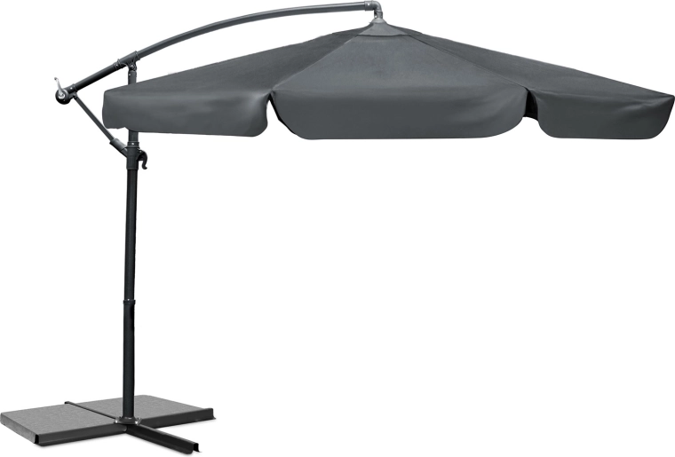 Užijte si pohodlí na terase, balkoně i na zahradě s tímto robustním bočním slunečníkem o průměru 350 cm po materiálu (3 m využitelné stínění). Nabízí voděodolný polyester 180 g/m², UV ochranu, ventilační otvor pro lepší cirkulaci vzduchu a plynulé nastavení výšky i úhlu. Součástí je odolný ochranný obal pro snadné skladování a delší životnost.