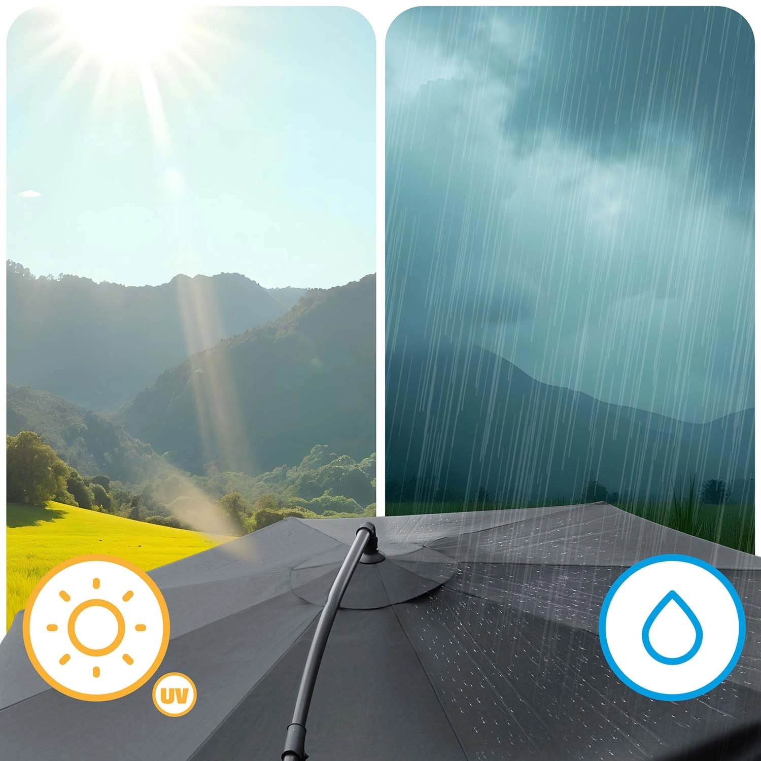 - Široké stínění: 350 cm po materiálu (3 m průměr střechy) pro pohodlné posezení více osob.