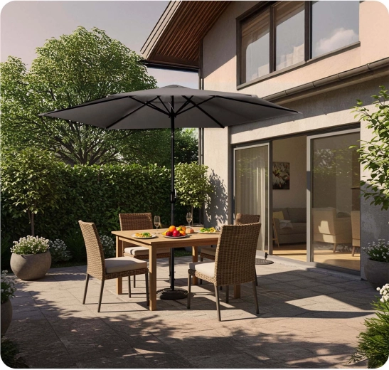 Intuitivní klikový mechanismus umožňuje rychlé otevření a zavření během pár sekund. Díky možnosti nastavení úhlu naklopení si přizpůsobíte stín přesně podle polohy slunce. Po složení zabere slunečník minimum místa a přiložený ochranný kryt z odolného materiálu prodlouží jeho životnost a chrání před UV zářením i nečistotami.