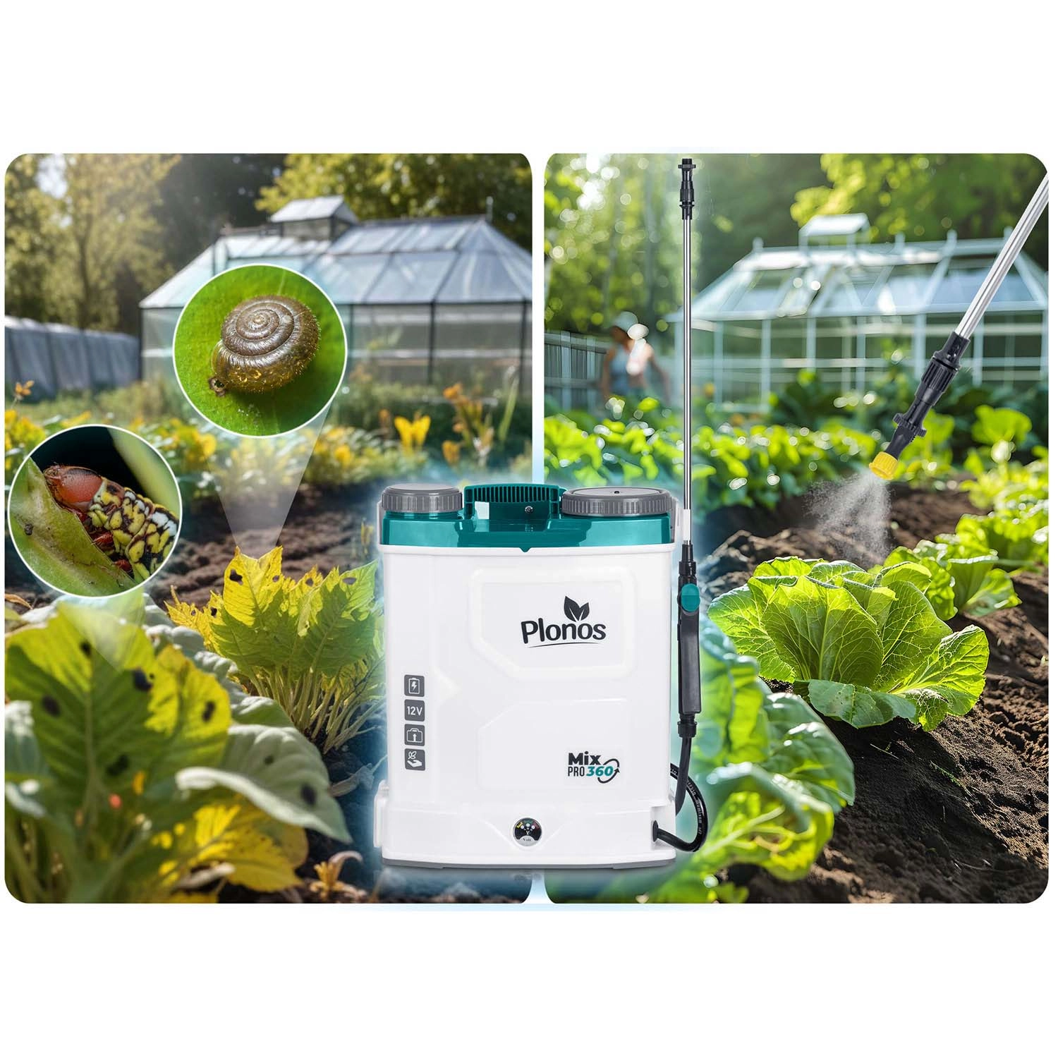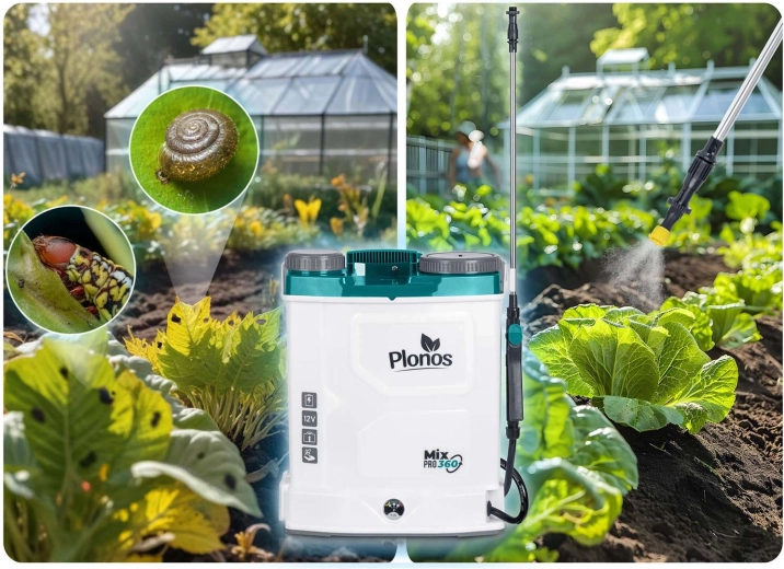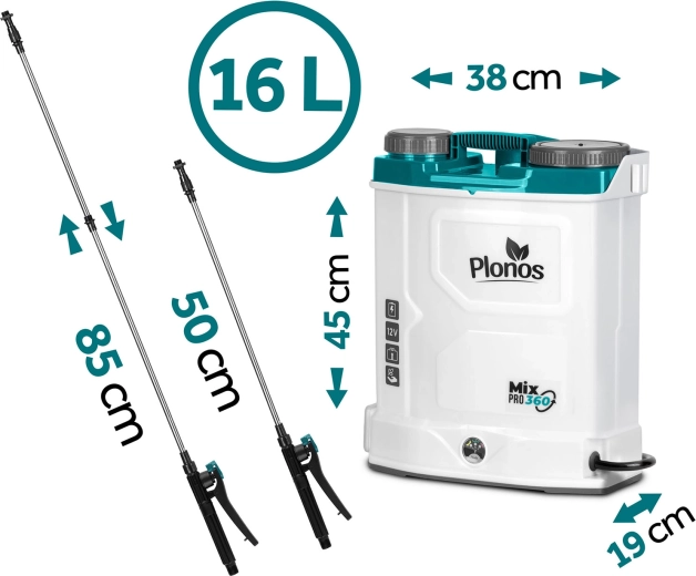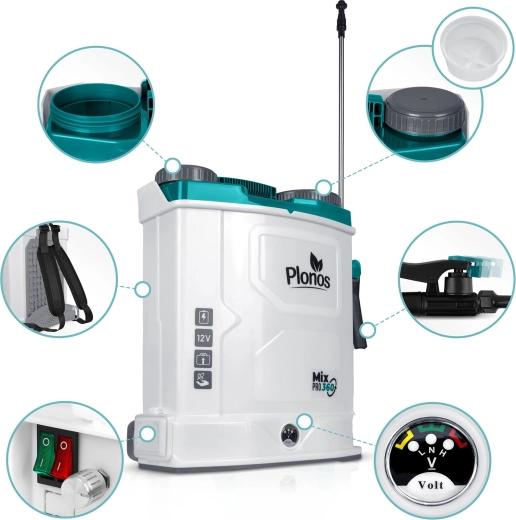 Postřikovač PLONOS Mix Pro 360 je spolehlivý pomocník pro ochranu a výživu rostlin na záhonech, trávnících i v sadech. Vestavěný míchací systém udržuje pracovní roztok homogenní, čímž zvyšuje účinnost postřiku a eliminuje ucpávání trysek. 12V/8Ah baterie nabízí tichý provoz a výdrž až 9 hodin na jedno nabití, takže pohodlně zvládnete i větší plochy.