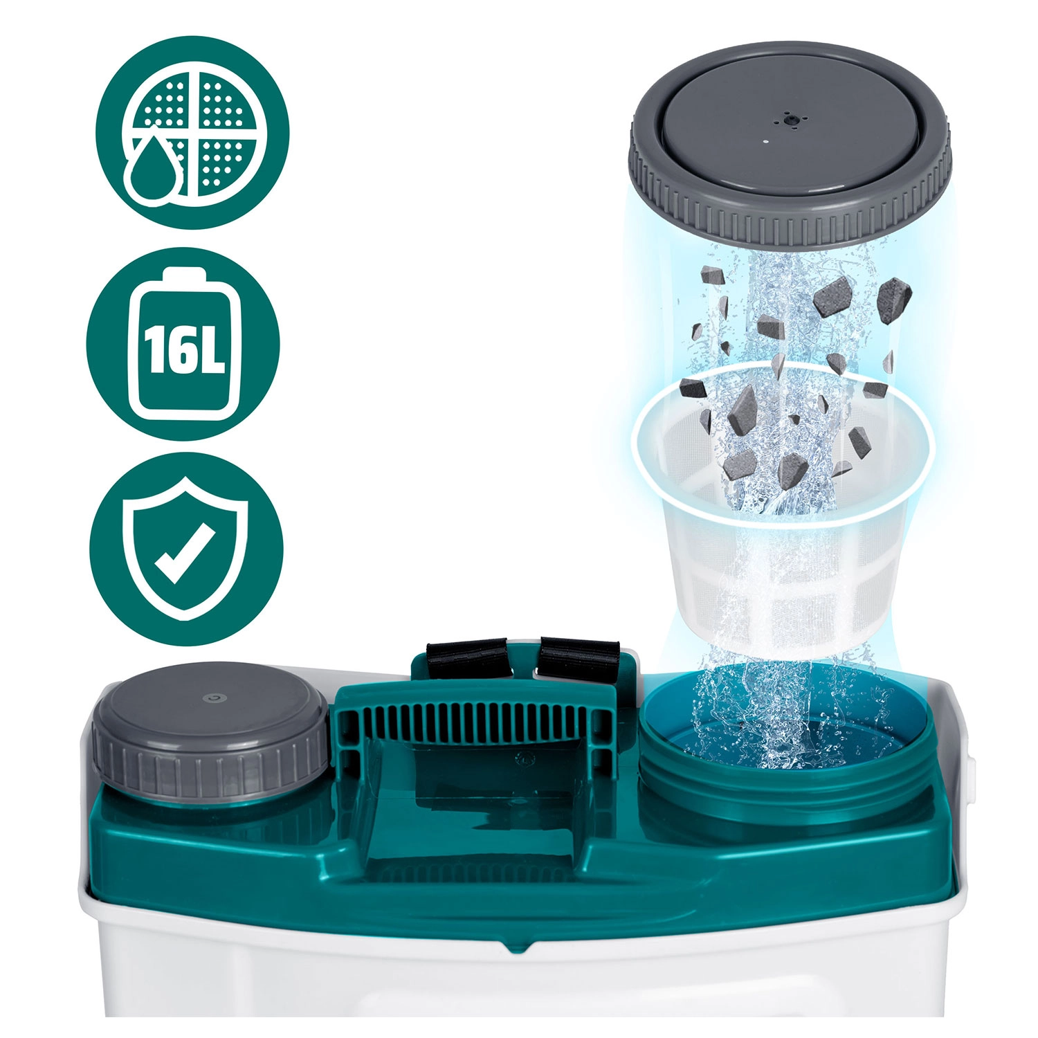 Díky 4 vyměnitelným tryskám snadno zvolíte ideální proud – jemnou mlhu pro citlivé rostliny, plochý paprsek pro přesnou práci, nastavitelnou čtyřotvorovou trysku pro univerzální použití či dvojitou hlavu pro rychlé pokrytí širších záhonů. Polstrované, zesílené popruhy s regulací, filtrační sítko proti nečistotám a odolná PE nádrž zajišťují dlouhou životnost i pohodlí při práci.
