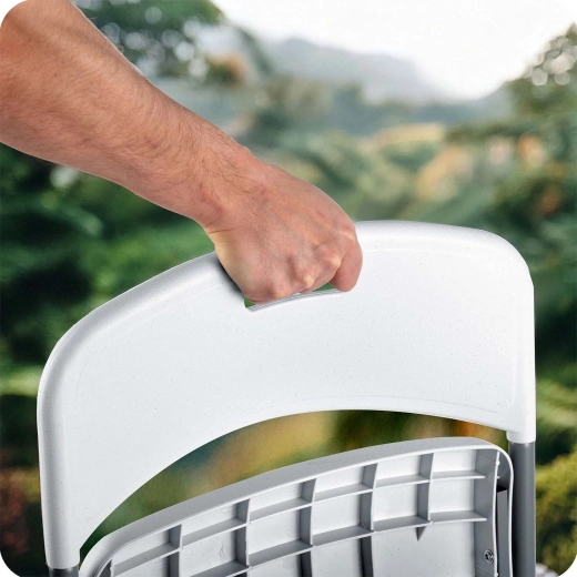 Praktický otvor v opěradle umožňuje pohodlné uchopení a rychlý transport. Ideální na časté přesuny mezi zahradou, terasou či eventem.