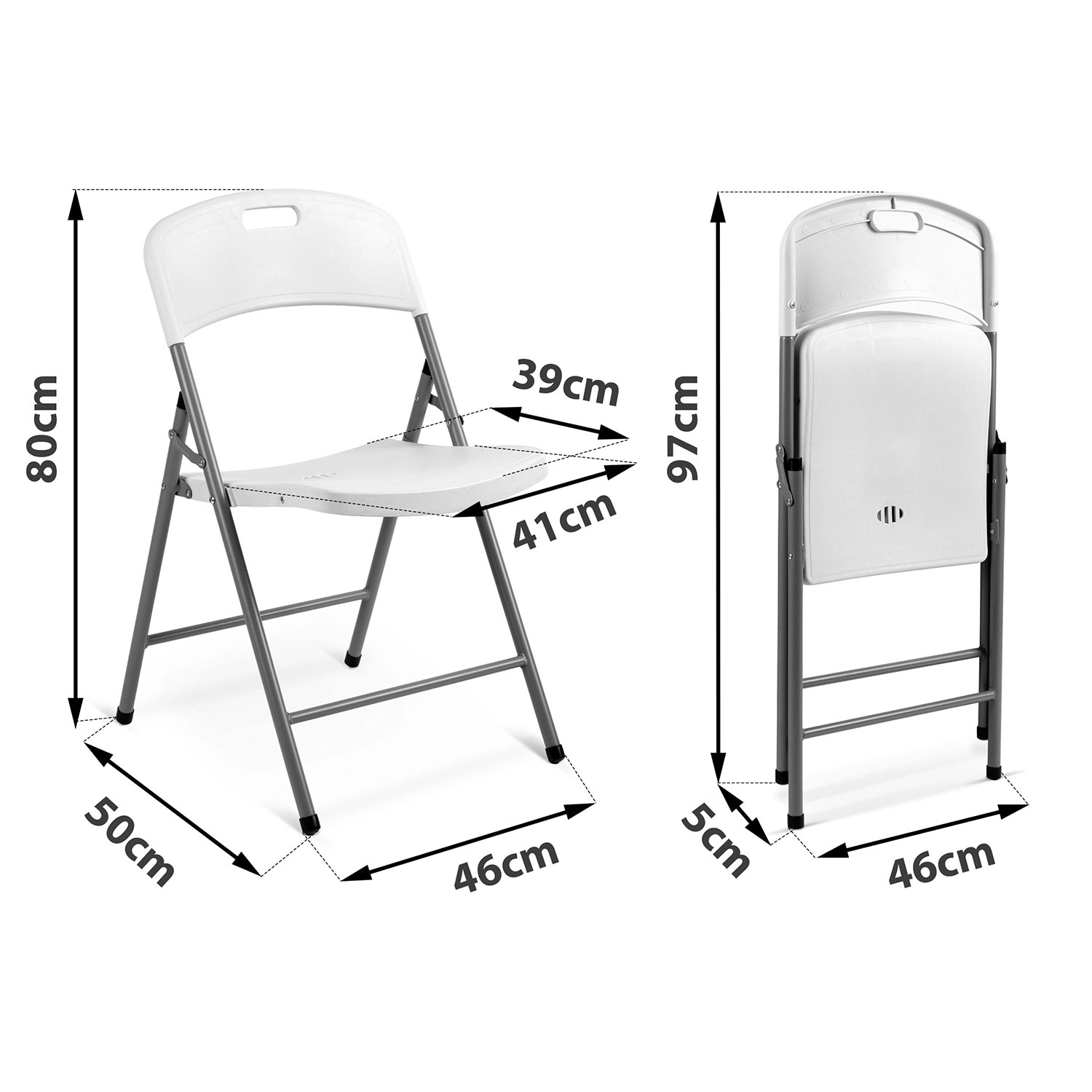 Židle se skládají do plochého tvaru, takže zabírají minimum místa při skladování. Voděodolný a UV odolný povrch se snadno čistí a rychle schne, což oceníte při venkovním použití, cateringu i domácích oslavách. Protiskluzové koncovky na nohách chrání podlahu a zvyšují stabilitu.