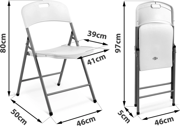 Díky rychlému skládání jedním pohybem a kompaktním rozměrům po složení se snadno skladují doma, v garáži i ve skladu. Protiskluzové koncovky na nohách chrání podlahu a zvyšují stabilitu. Konstrukce s výztuhami a žebrováním sedáku poskytuje mimořádnou nosnost až 200 kg, takže židle obstojí i při intenzivním použití.
