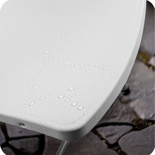 Moldovaný PE odolává vodě, UV záření i skvrnám. Stačí otřít a je připraveno k dalšímu použití – ideální pro venkovní sezení.