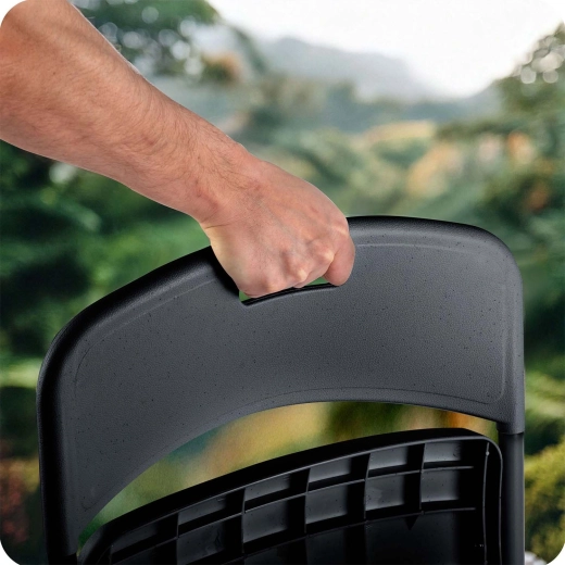 V opěrce je praktický úchyt, který umožní pohodlné přenášení a rychlé rozložení i složení židle – ideální pro časté stěhování a akce.