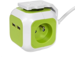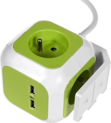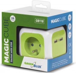 Rozbočovač GREENBLUE Magic Cube efektivně rozšíří počet dostupných zásuvek a umožní současně napájet více zařízení. Dvě integrovaná USB zajistí rychlé a pohodlné nabíjení telefonu, tabletu či sluchátek bez nutnosti samostatné nabíječky. Kompaktní kubický design šetří místo a brání blokování sousedních zásuvek.