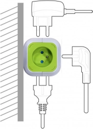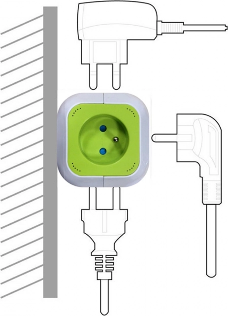 Kostkový tvar s 4 zásuvkami na různých stranách šetří místo a umožňuje pohodlné zapojení i objemnějších vidlic bez vzájemného blokování.