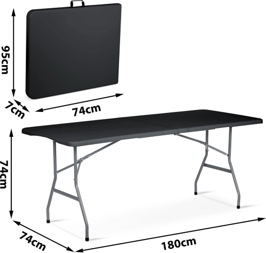 Praktický a odolný skládací stůl o délce 180 cm je ideální na zahradní párty, svatby, komunie i firemní akce. Nabízí pevnou ocelovou konstrukci s práškovým lakem, voděodolnou a snadno omyvatelnou deskou z PE a pohodlné přenášení díky integrované rukojeti. Po složení zabere minimum místa a je stabilní, lehký a připravený k rychlému použití.