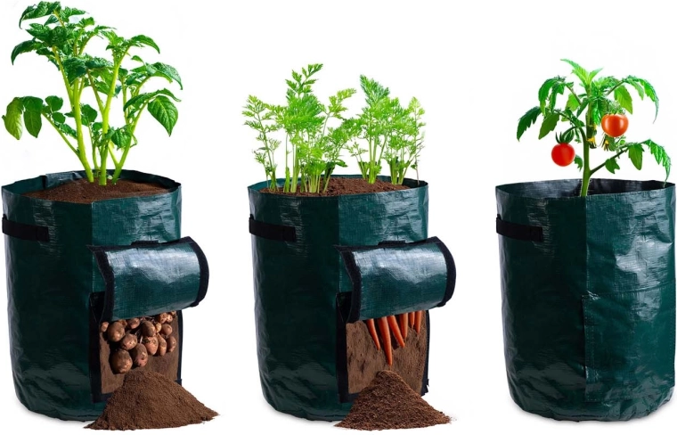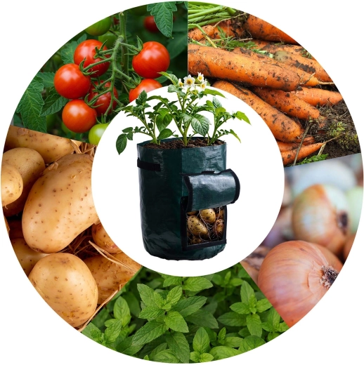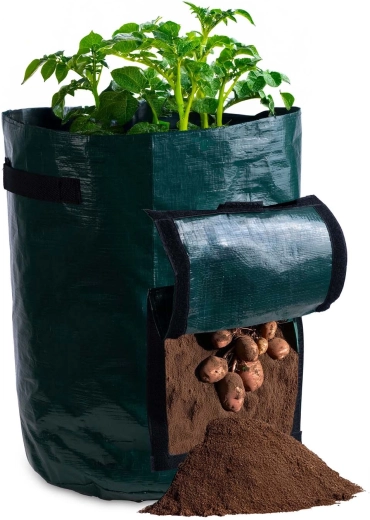 Přední okénko na suchý zip vám umožní kontrolovat růst a sklízet jen zralé hlízy bez rozrušení celé rostliny.