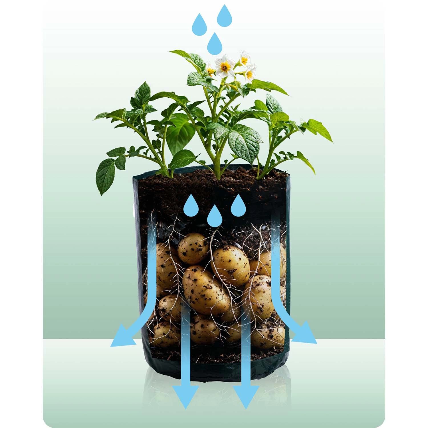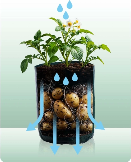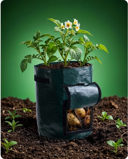 Objevte snadné pěstování na balkoně, terase i malé zahradě. Pytel na pěstování poskytuje optimální podmínky pro kořeny díky prodyšnému PE materiálu a promyšlenému větrání a odtoku vody. Díky přednímu okénku na suchý zip zkontrolujete růst a sklidíte jen dozrálé hlízy bez rozhrabávání celé rostliny.