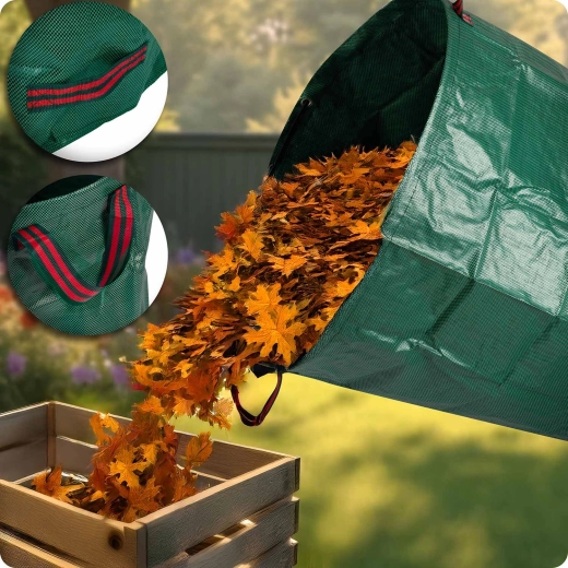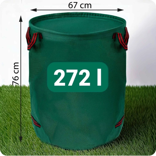 Velkoobjemový zahradní pytel o kapacitě 272 litrů pojme posekanou trávu, listí i větve z celé zahrady. Zesílený horní lem brání samovolnému skládání, takže pytel drží tvar při plnění a manipulaci. Ideální pomocník pro pravidelnou údržbu zahrady a transport bioodpadu na kompost.