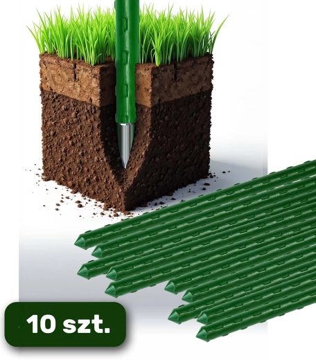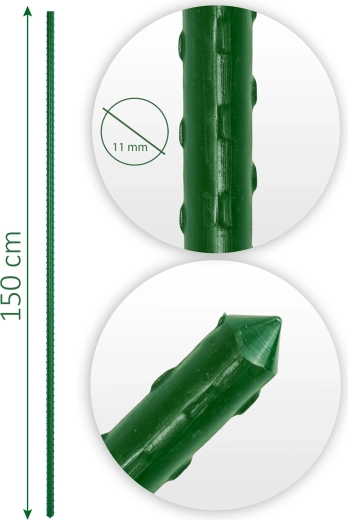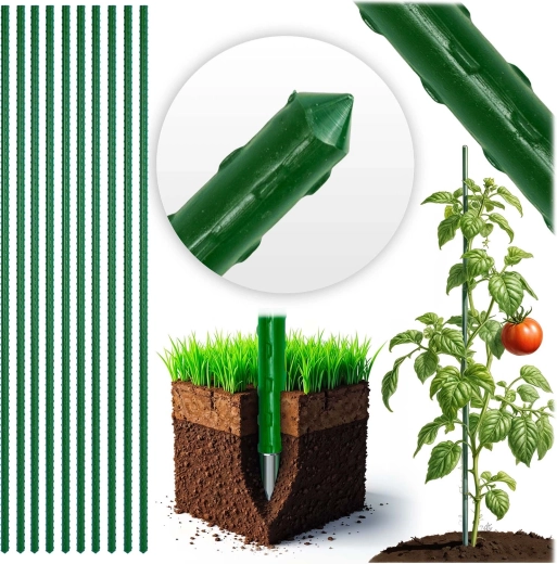 Ostrý hrot a žebrovaný povrch umožňují rychlé zasunutí do půdy a pevné ukotvení bez klouzání – ideální pro rajčata, fazole i hrách.