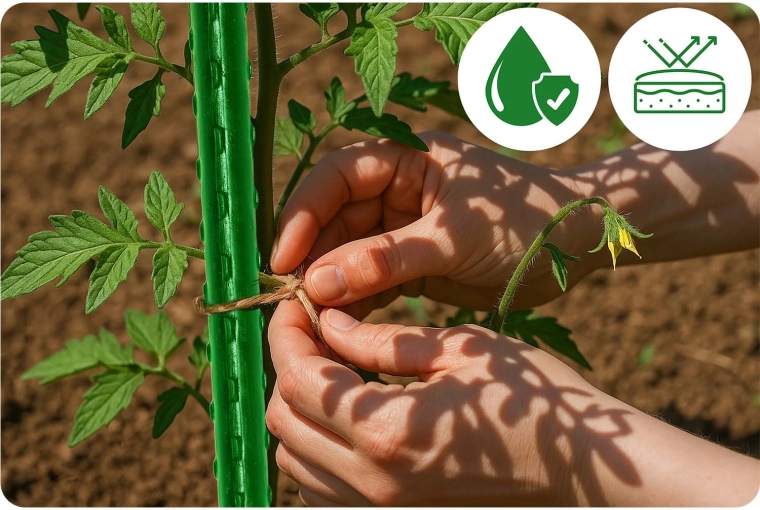 Univerzální použití do záhonů i velkých květináčů pomáhá udržet pořádek, zlepšuje přístup světla a vzduchu k listům a usnadňuje zalévání, hnojení i zaštipování. Při pěstování rajčat může správné vyvázání na tyče přinést vyšší úrodu a lepší kvalitu plodů.