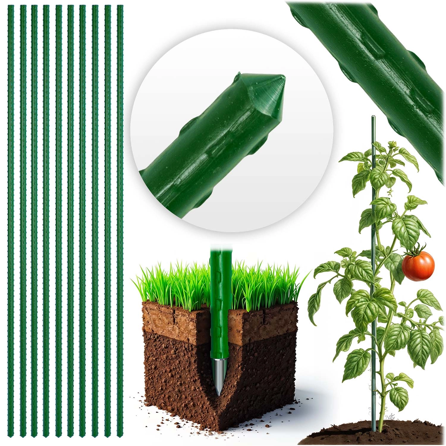 Vytvořte pevným a spolehlivým vedením ideální podmínky pro růst. Tyče se snadno zapichují díky ostřenému hrotu, zůstávají stabilní po celou sezónu a díky nerezovému ocelovému jádru jsou mimořádně trvanlivé. Rýhovaný povrch zajišťuje lepší přilnavost provázků a výhonků, takže rostliny vedete bezpečně a bez lámání.