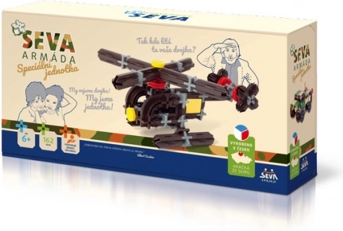 Stavebnice SEVA Armáda přináší dětem i rodičům chytrou zábavu plnou možností. Modularita a variabilní propojení dílků umožňují stavět různé modely, včetně vrtulníku či dalších armádních vozidel. Díky promyšlenému systému dílků se děti učí trpělivosti, rozvíjejí prostorovou představivost a zlepšují koordinaci ruky a oka.