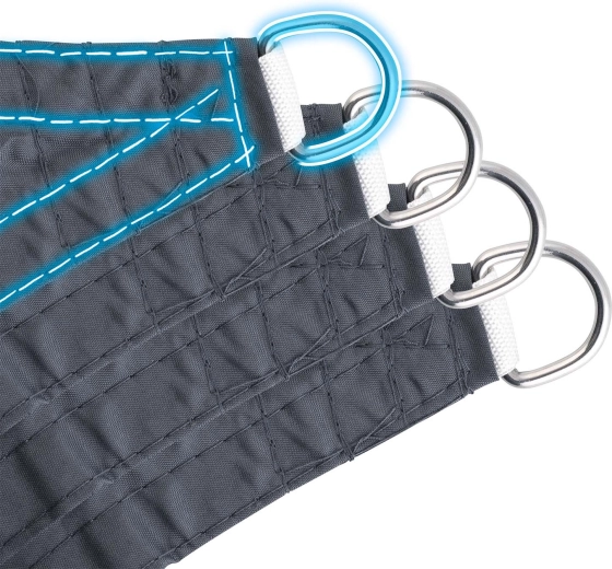 Plachta je navržena pro dlouhou životnost: má zdvojené švy po obvodu, zesílené rohy a kovová kroužky pro bezpečné napnutí mezi stěny, sloupky či stromy. Instalace je rychlá a intuitivní – stačí využít přiložené 4 upevňovací linky a upravit napnutí podle potřeby.