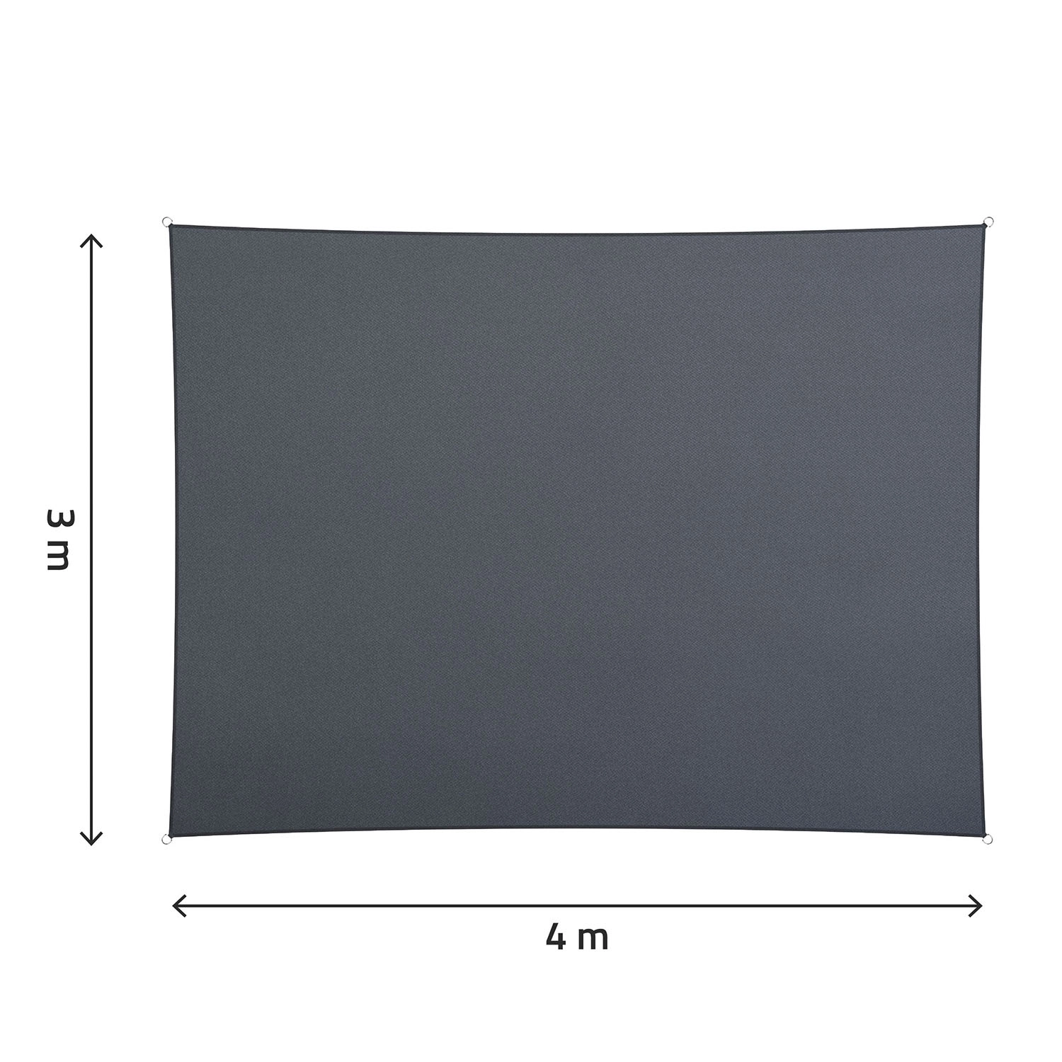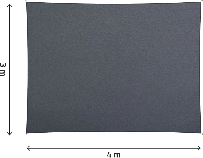 Obdélníková stínící plachta 3 × 4 m v elegantní šedé barvě poskytne stabilní a komfortní stín na jakékoli venkovní ploše. Hustě tkaný PE materiál 180 g/m² je vodoodpudivý a pomáhá chránit před UV zářením i lehkými srážkami – kapky po povrchu jednoduše stečou.