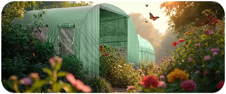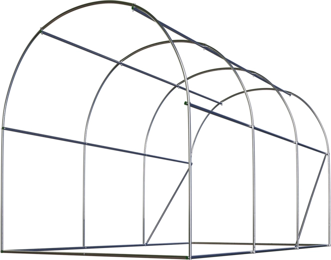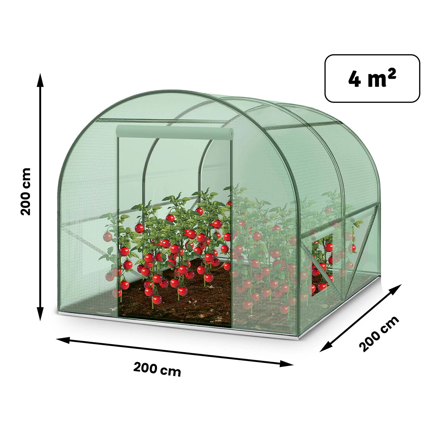 Robustní, oboustranně pozinkované ocelové profily 16 × 0,5 mm odolávají korozi a zaručují dlouhou životnost. Čtyři boční okna na suchý zip s jemnou síťkou umožňují efektivní větrání, omezení kondenzace a snadnou kontrolu porostu bez nutnosti vstupu. Přední vchod na zip se dá vyrolovat a zajistit pro pohodlný přístup při práci.