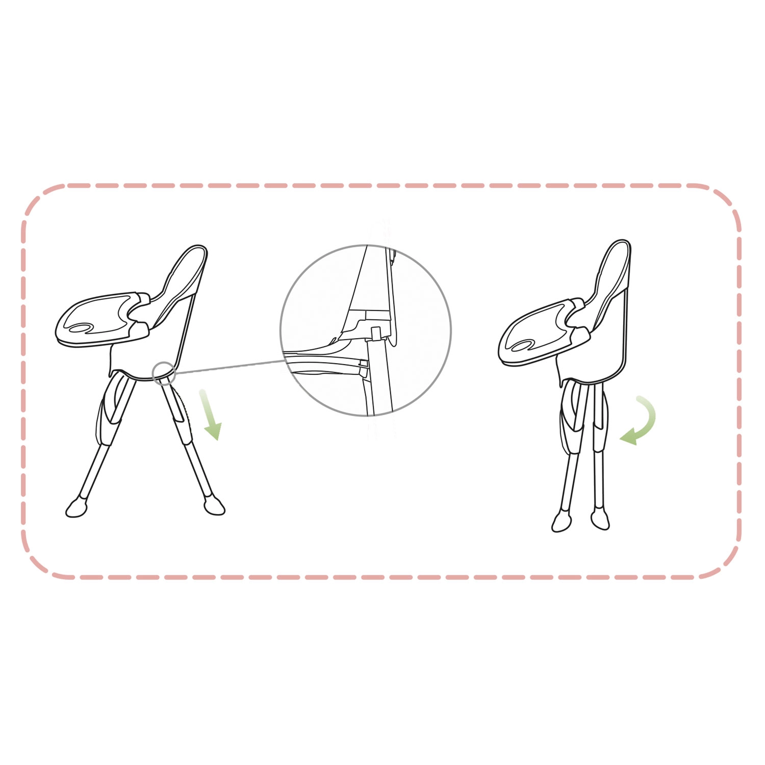 Židličku snadno složíte do kompaktní velikosti, takže nezabírá místo ani v menších bytech. Tři úrovně nastavení vzdálenosti pultíku umožní ideální pozici pro různé věkové fáze dítěte. Praktický košík pod sedákem pojme ubrousky, hračky i bryndák, takže máte vše po ruce.