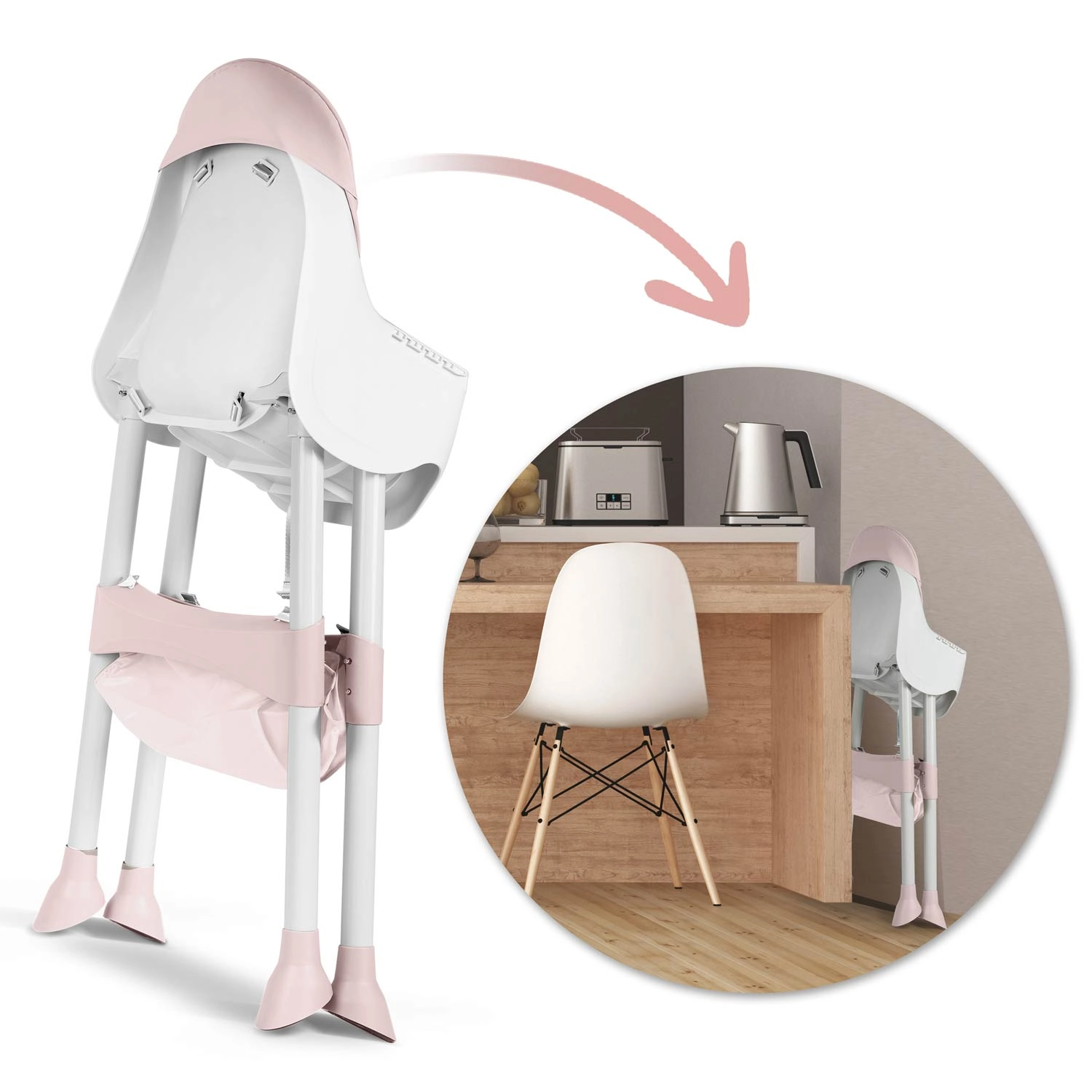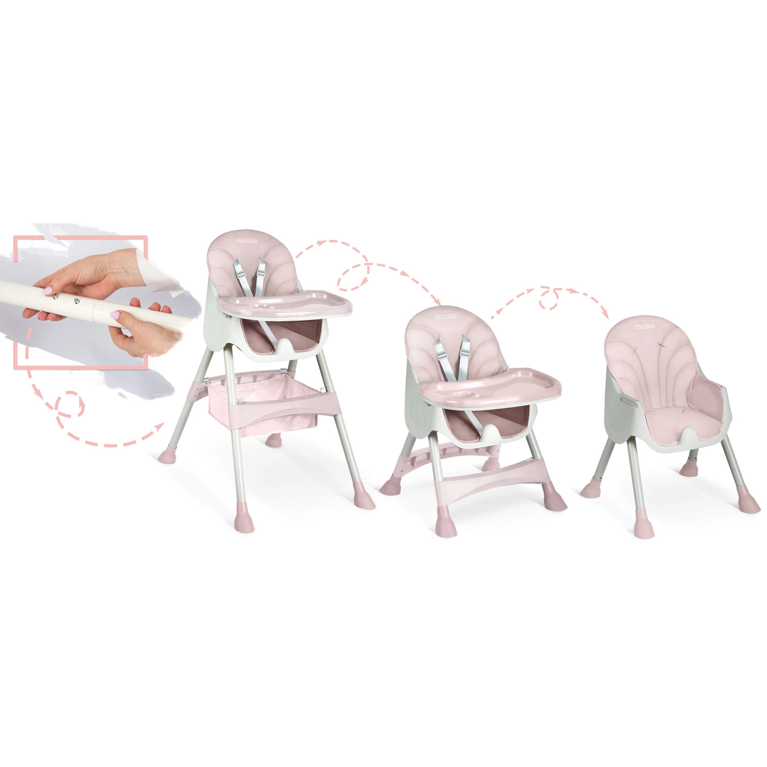 Stylová a ultralehká jídelní židlička Milo pro miminka a batolata nabízí 3v1 využití, snadné skládání pro úsporu místa a odnímatelný, nastavitelný pultík s vyvýšenými okraji. Díky 5bodovému bezpečnostnímu pásu a protiskluzovým nožkám je sezení dítěte při krmení i hraní maximálně bezpečné. Povrchy se rychle čistí – stačí setřít, případně pultík umýt pod tekoucí vodou. Součástí je i praktický úložný košík.