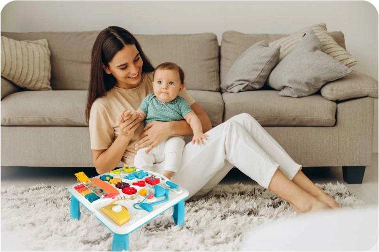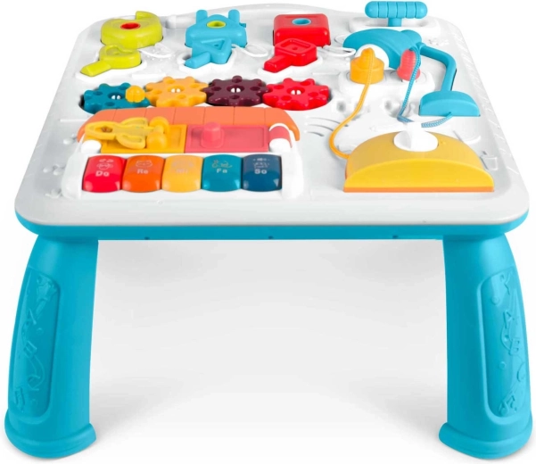 Rodiče ocení možnost úplného vypnutí a dvoustupňovou regulaci hlasitosti. Stolek je stabilní, pevný a barevně podnětný, s rychlou a jednoduchou montáží. Je ideální jako dárek pro děti od 12 měsíců, které si s ním vyhrají dlouhé hodiny a současně se naučí barvy, čísla i princip příčina–následek.