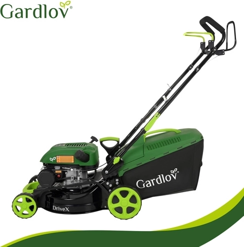 Benzínová sekačka GARDLOV DriveX kombinuje vysoký výkon, pohodlí a jednoduchou údržbu. Samojízdný pojezd s velkými zadními koly zjednodušuje manipulaci v mírném svahu, zatímco profilovaný nůž 40,6 cm zajišťuje čistý střih a pěkný vzhled trávníku. Po skončení práce stačí připojit hadici k mycímu portu a snadno opláchnout šasi i žací ústrojí.