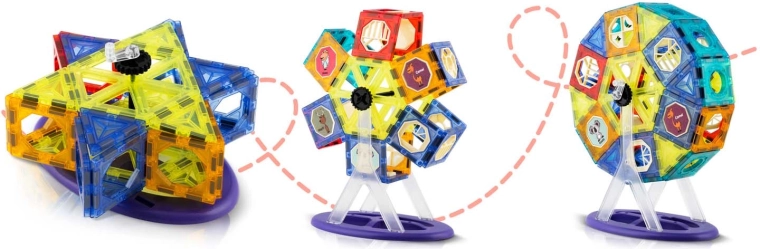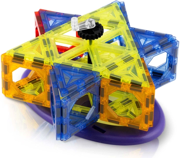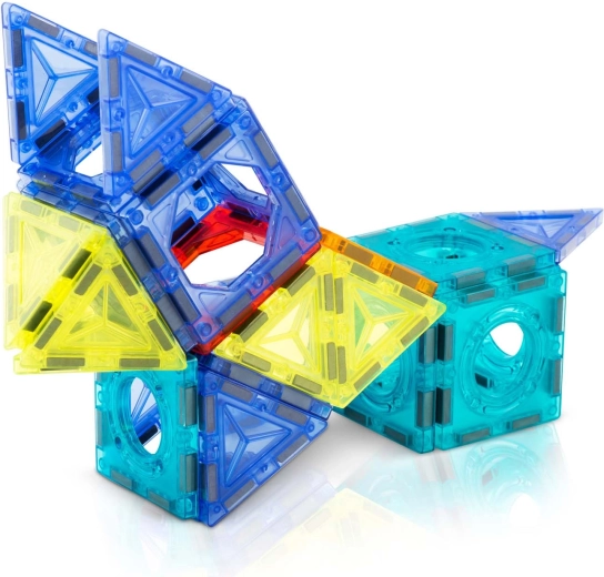 Barevné, průsvitné tvary se spojují pomocí magnetů „na zacvaknutí“. Děti rychle staví pevné 3D modely a učí se principům geometrie a symetrie.