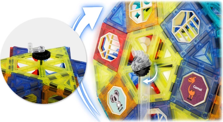 Magnetické stavebnice s kolotočem RICOKIDS přinášejí dětem nekonečné možnosti stavění a učení hrou. Průsvitné dlaždice v různých tvarech a barvách se snadno spojují díky magnetům, takže i menší děti rychle vytvoří stabilní modely. Rotující diabelský mlýn na robustním podstavci se skutečně točí a přináší do hry pohyb, radost i nové konstrukční výzvy.