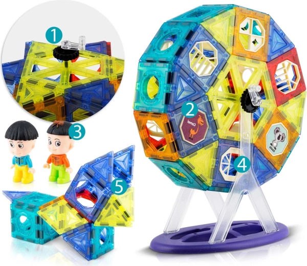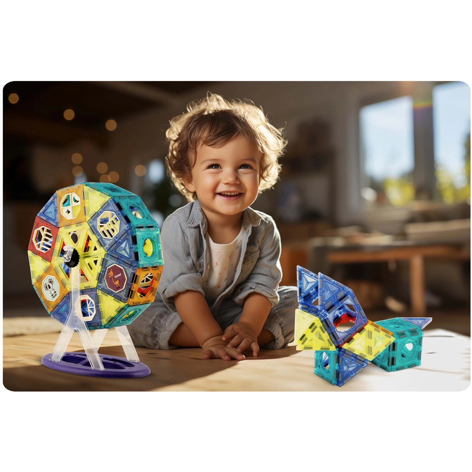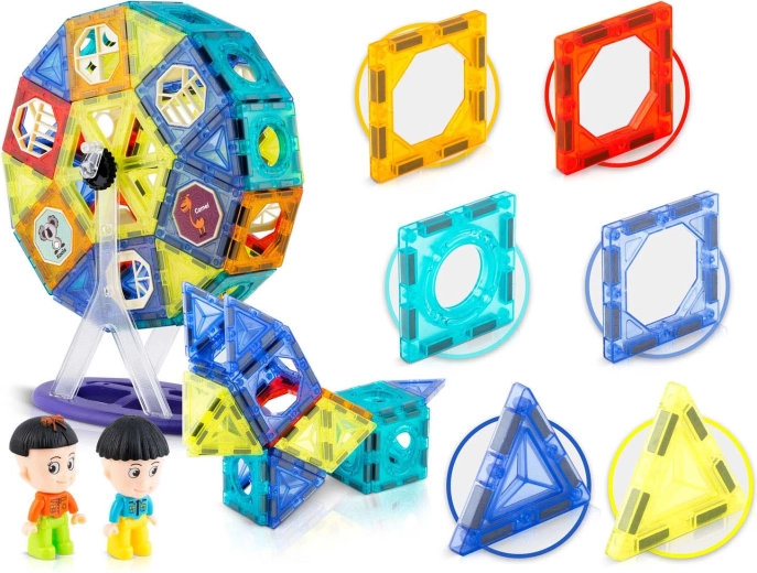 Objevte kreativní svět magnetických stavebnic RICOKIDS s otočným kolotočem! Tento rozšířený set nabízí více než 70 dílků, průhledné barevné tvary a pohybující se Ferrisovo kolo na stabilní základně. Děti si trénují jemnou motoriku, koordinaci ruka–oko a prostorovou představivost, zatímco staví nekonečné kombinace. Součástí jsou figurky, samolepky a krásné dárkové balení. Bezpečné a certifikované zábavné učení pro malé konstruktéry.