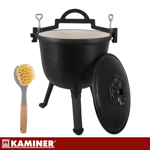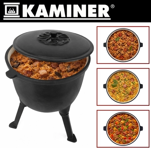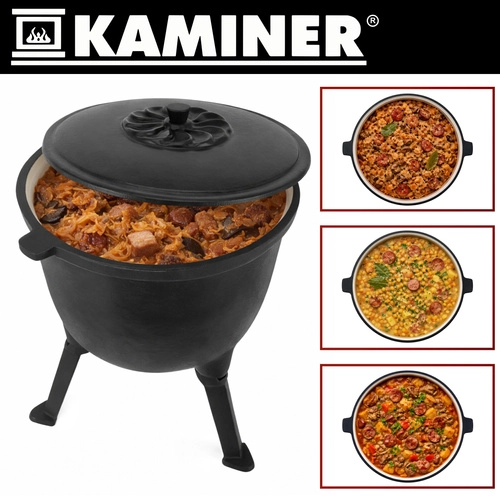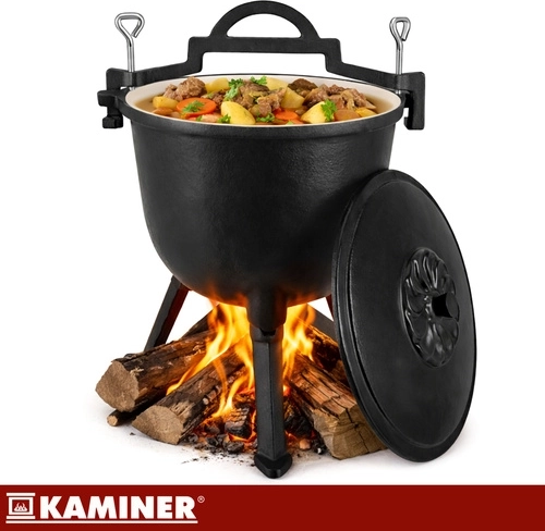 Uvařte si guláš, fazolový kotlík, lečo nebo hutné polévky snadno a stylově. Litinový kotlík KAMINER 8 l na třínohém stojanu zvládá vysoké teploty a dlouho drží žár, takže je perfektní pro pomalé dušení a jednohrncová jídla. Smaltované vnitřní povrchy kotlíku i víka zjednodušují údržbu – bez nutnosti pravidelné impregnace.
