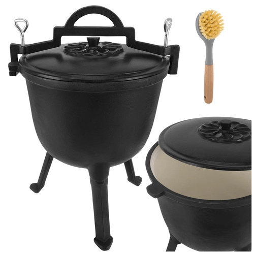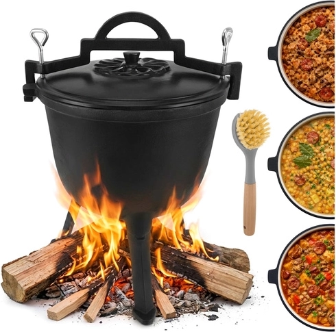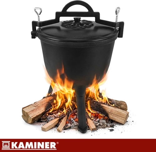 Silnostěnná litina akumuluje žár pro rovnoměrné dušení gulášů, polévek a dalších jednohrncových specialit nad plamenem či žhavým uhlím.