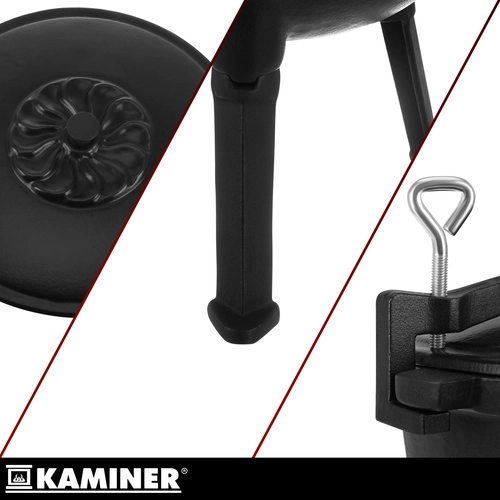 Odšroubovatelné nožky zajistí jisté usazení v ohništi, zatímco těsně přiléhající víko udrží teplo i šťavnatost pokrmů.